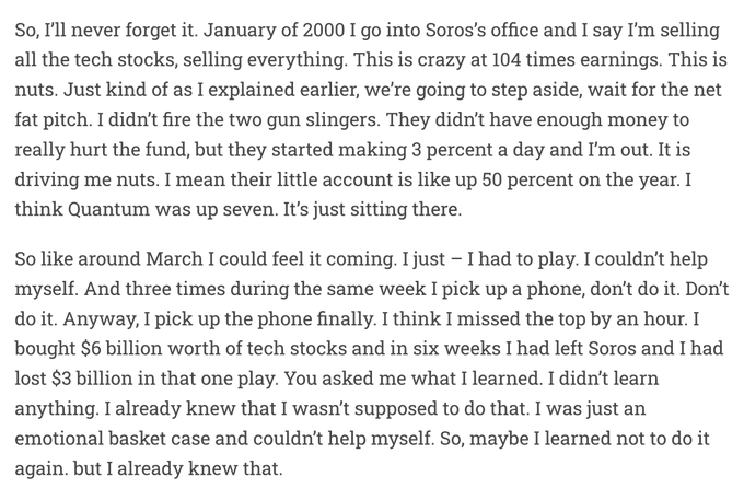 Stanley Druckenmiller after losing $3 billion on tech stocks during the 2000 bubble: